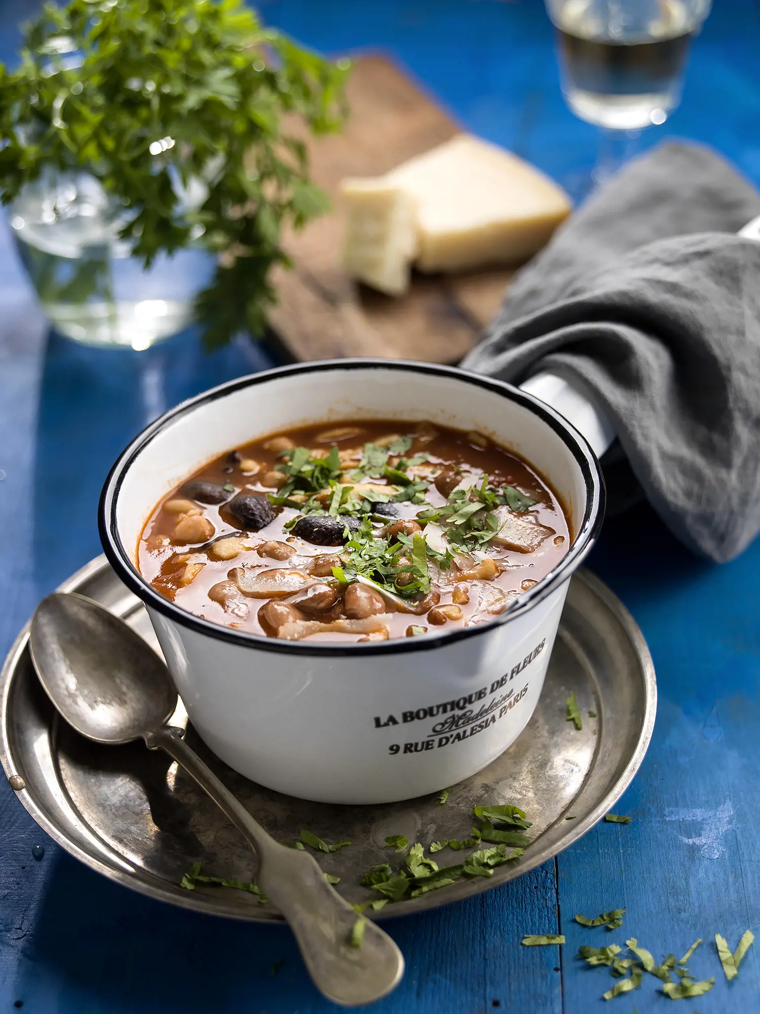 Táto sýta polievka príde vhod najmä počas zimných dní, alebo ak potrebujete pohnúť zásobami v špajzi. Je dôkazom, že strukoviny sú naozaj všestranná surovina, a že okrem obilnín si dobre rozumejú aj s cestovinami. A tiež, že cestoviny môžu zažiariť v polievke rovnako dobre ako v hlavnom chode.