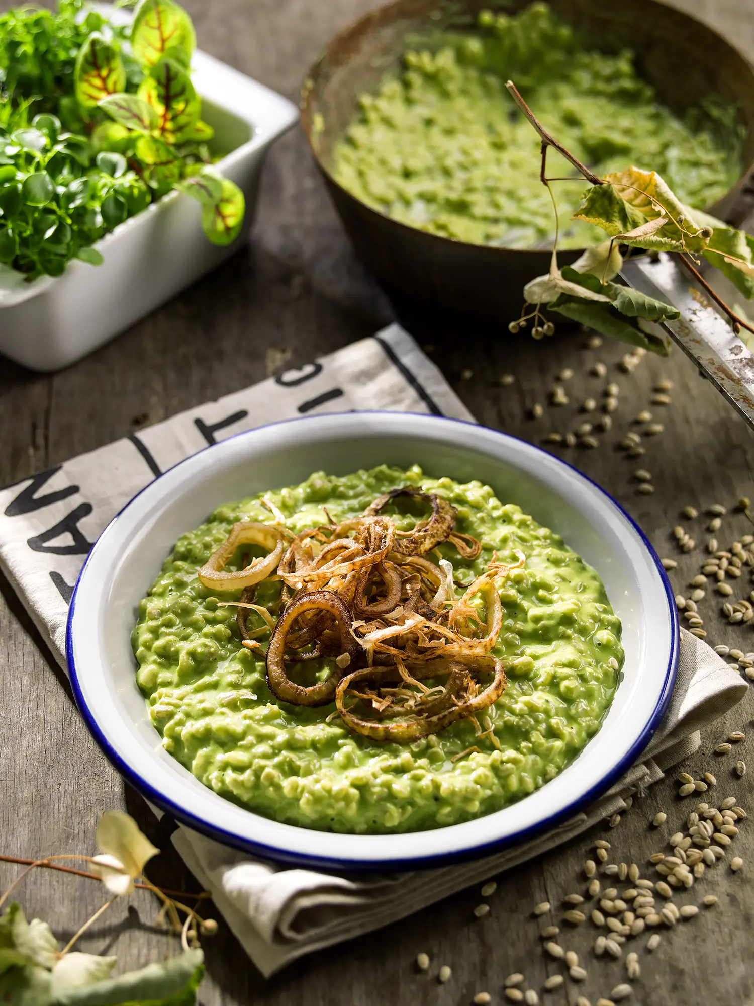 Krupoto s medvedím cesnakom a smaženou cibuľkou