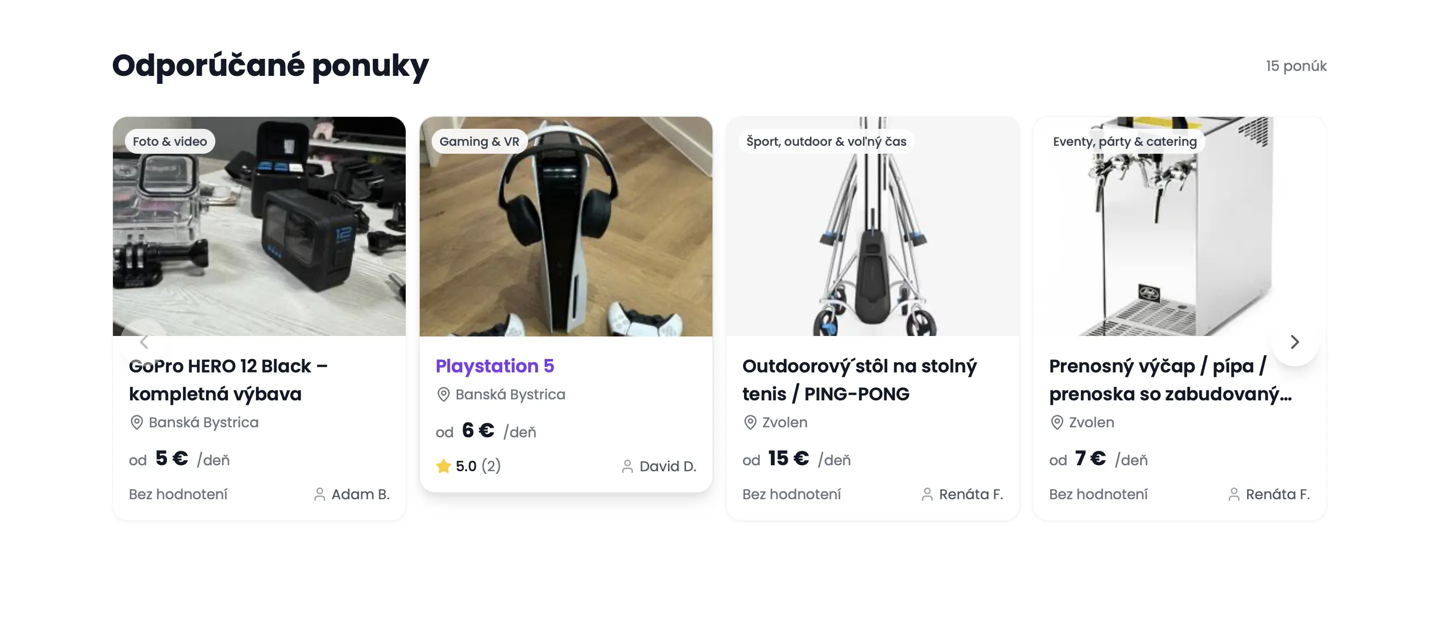 Tradičné požičovne sú limitované segmentom, my sme trhovisko pre všetko - od fénu po bager. Naším cieľom je, aby bolo požičanie veci rovnako jednoduché ako objednanie taxíka alebo hotela cez telefón. Celý proces sme zdigitalizovali a vybavili profesionálnymi nástrojmi: od overenia identity a online platieb až po automatické zmluvy a kalendáre. Hlavný rozdiel je v tom, že ceny u nás neurčujeme my, ale priamo ľudia, ktorí veci vlastnia. Keďže nemajú náklady na veľké predajne a zamestnancov, prenájom u nich je typicky lacnejší než v komerčnej požičovni.