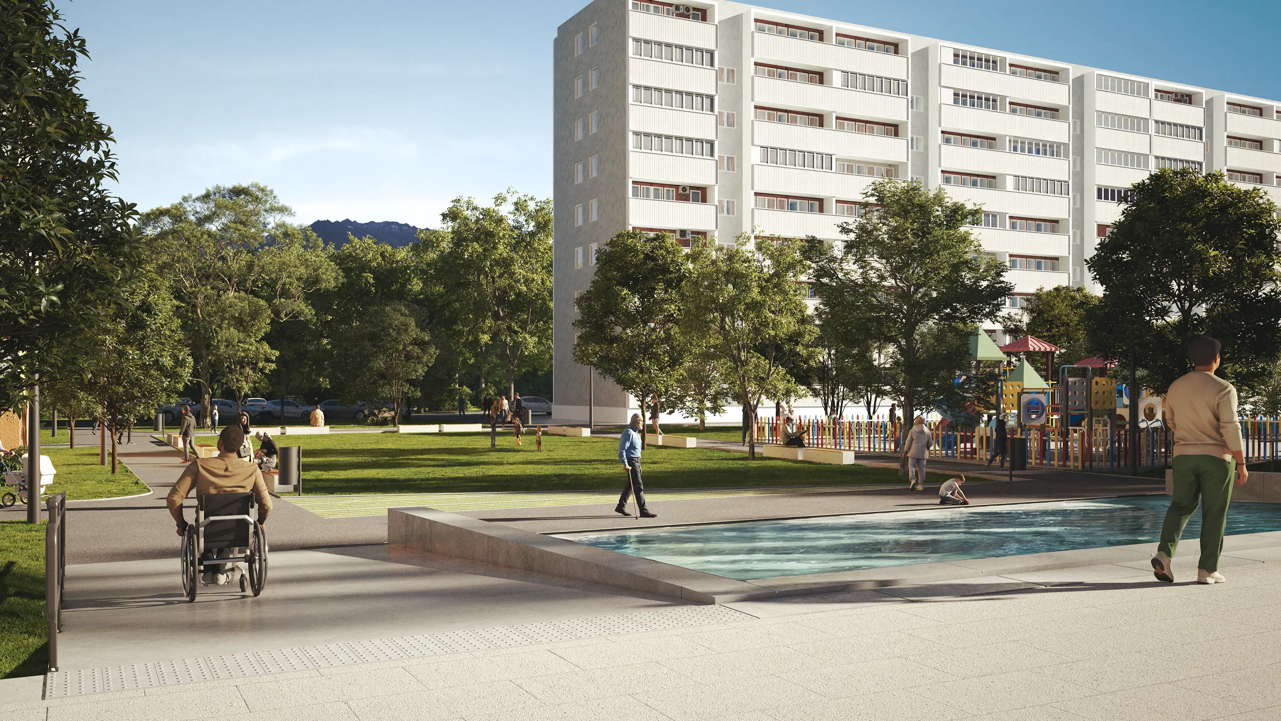 „Cieľom projektu je moderný verejný priestor, ktorého súčasťou je aj odstraňovanie bariér a sprístupňovanie verejného priestoru širokej komunite,“ približuje hlavná iniciátorka mestská poslankyňa Zdenka Zaťovičová. „Plánom je odstrániť schodisko aj s provizórnou rampou smerom od Domu služieb do sídliska. Vznikne tu nový vodný prvok, ktorý bude mať z jednej strany nové schodisko a z druhej bezbariérový prístup. Súčasťou projektu sú aj nové stromy, verejné osvetlenie, či nové lavičky, cyklostojany a smetné koše.“